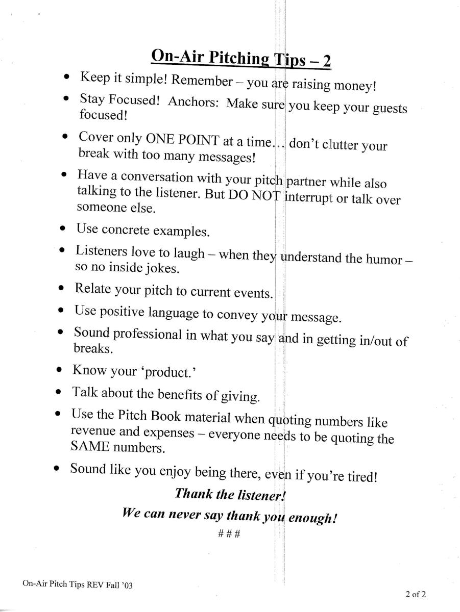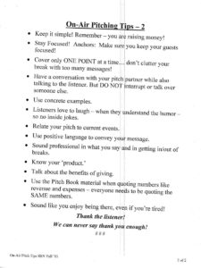 Information on fundraising events and on-air pledge drives