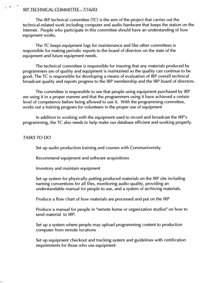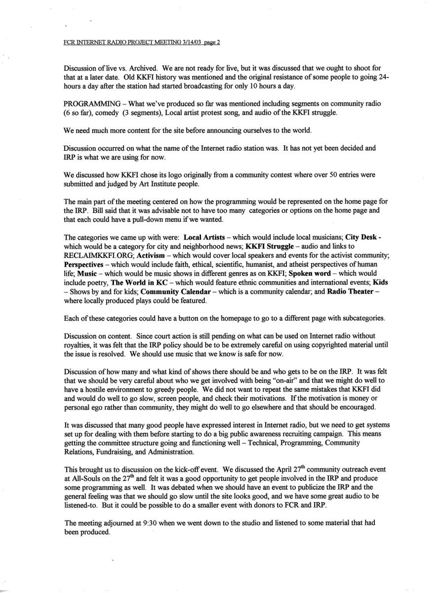 This information records the history of KKFI through its many meetings including board and committees. Although incomplete, it gives a documented way of looking at how people running the station made decisions.