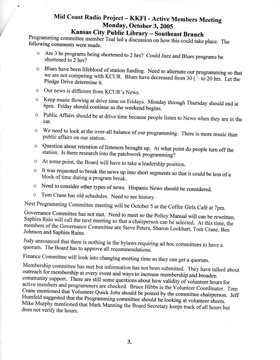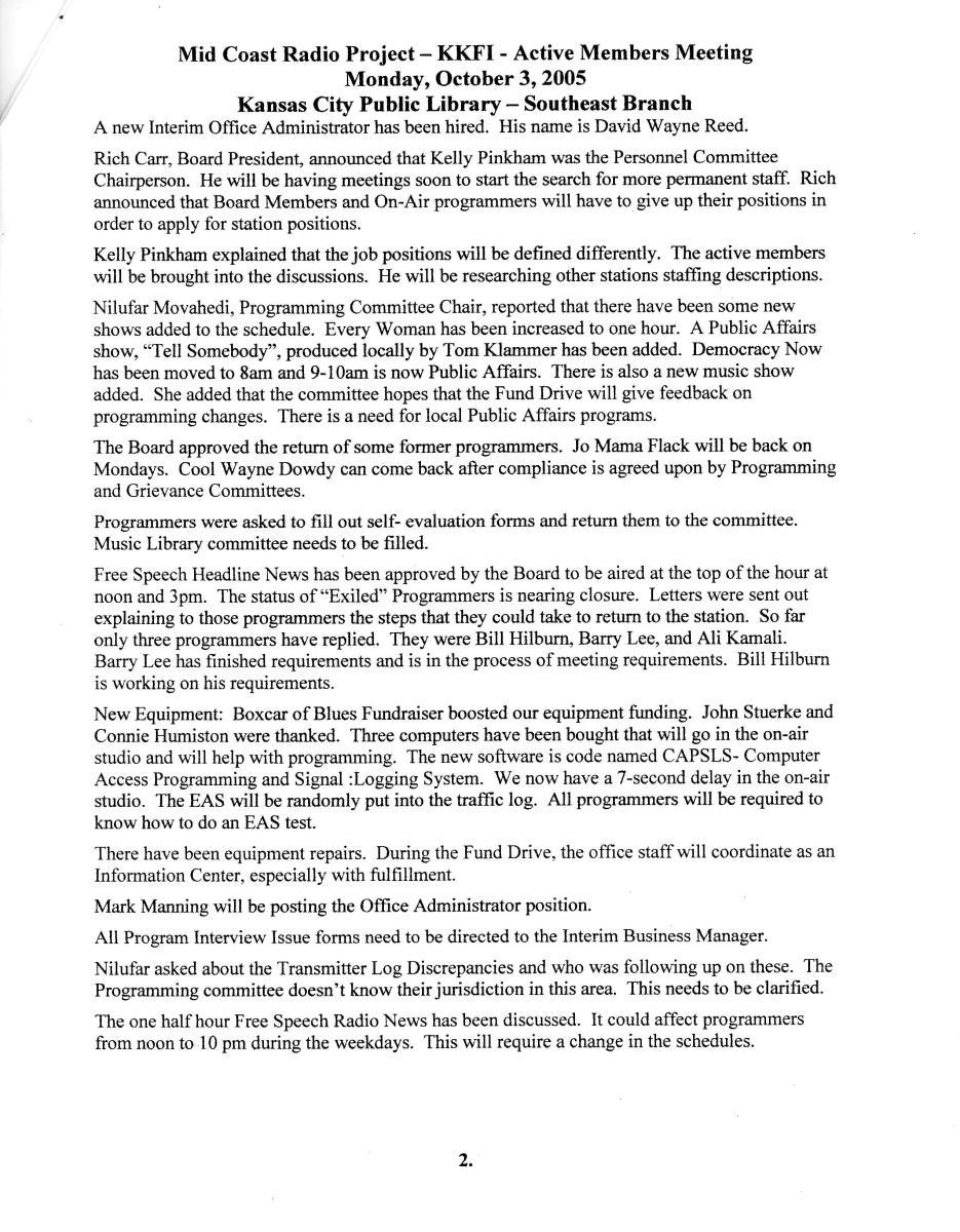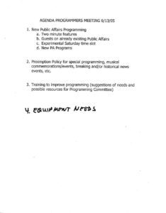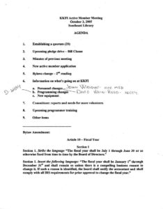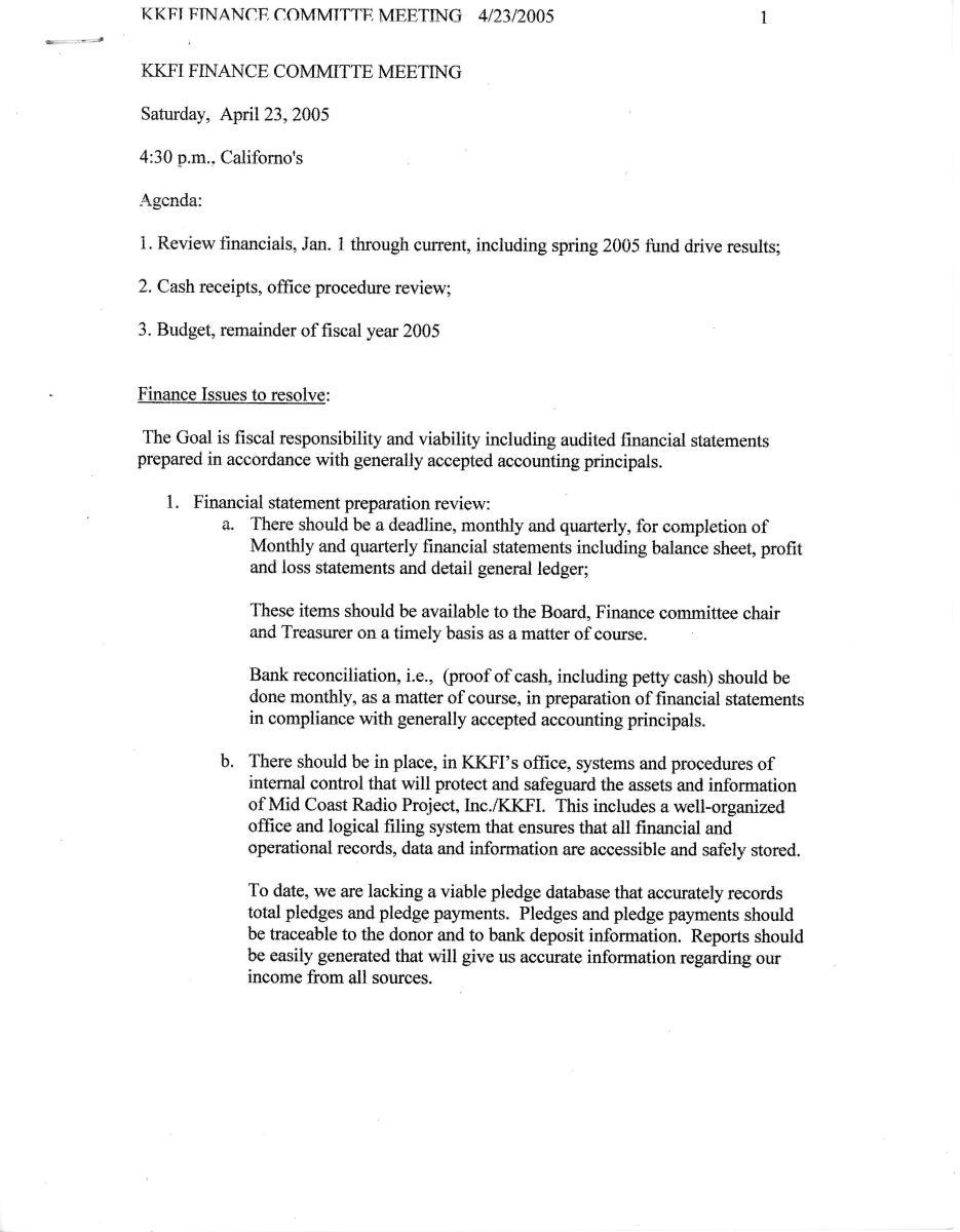 This information records the history of KKFI through its many meetings including board and committees. Although incomplete, it gives a documented way of looking at how people running the station made decisions.