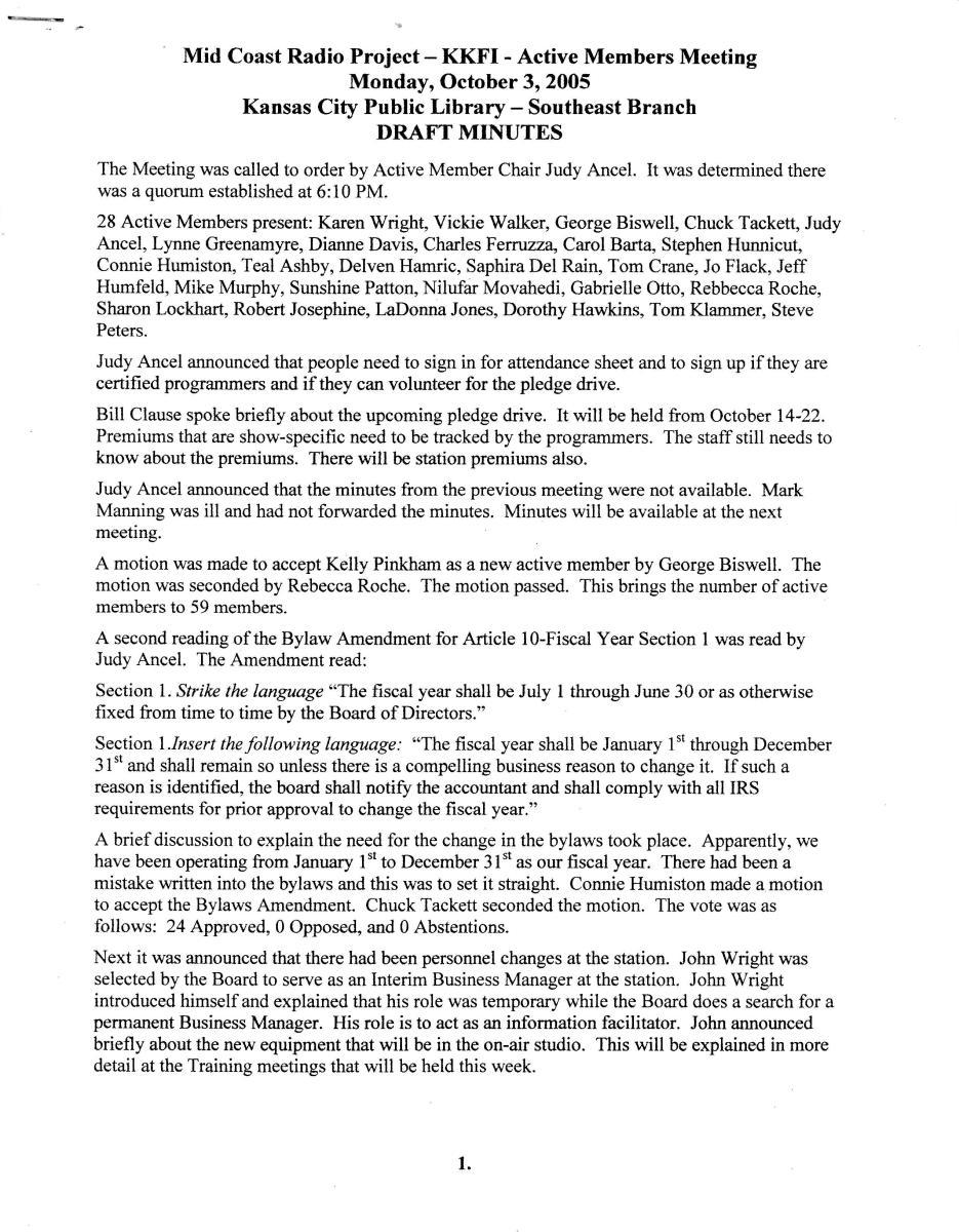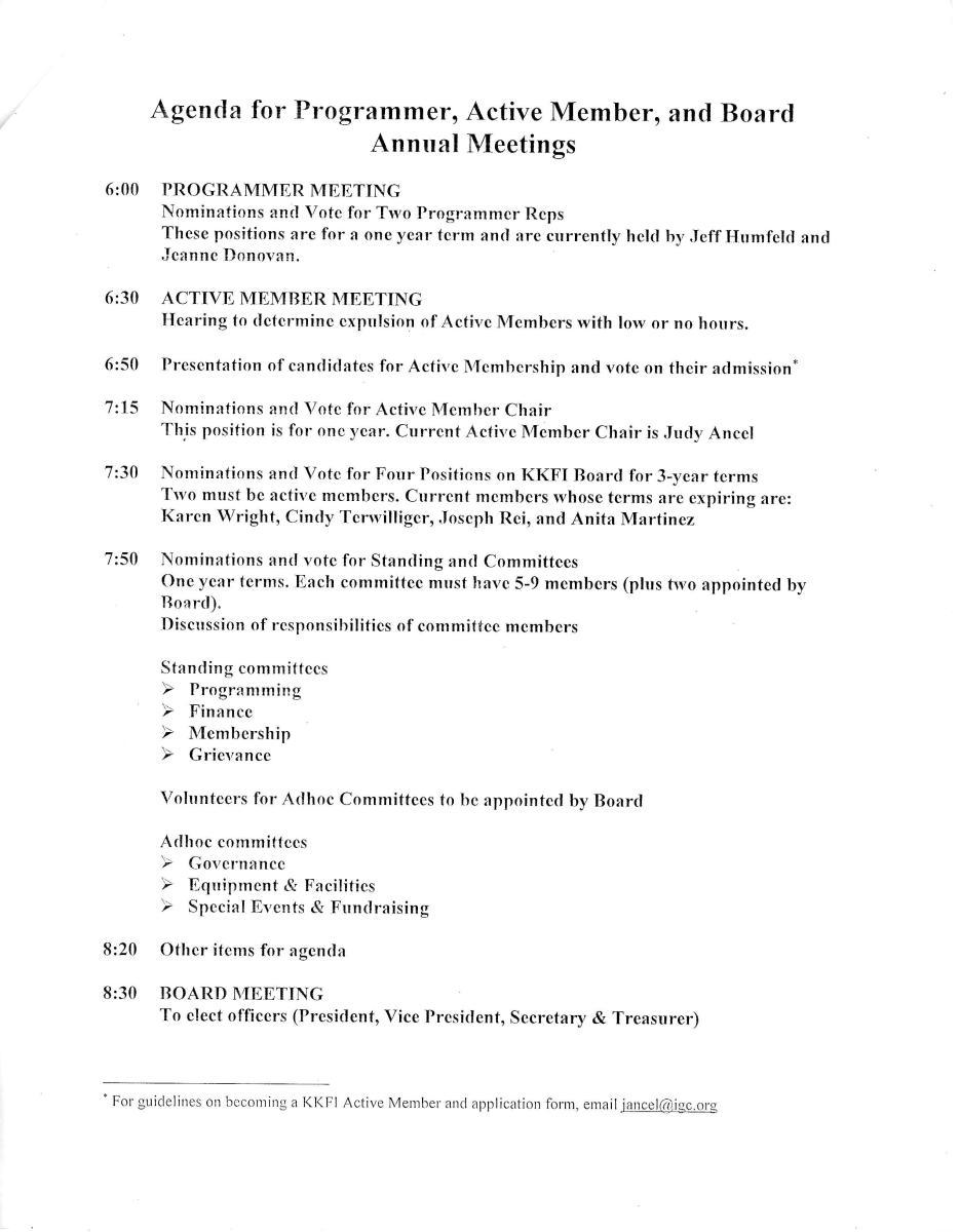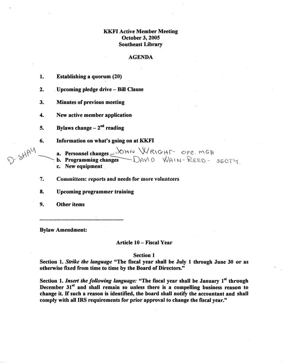 This information records the history of KKFI through its many meetings including board and committees. Although incomplete, it gives a documented way of looking at how people running the station made decisions.
