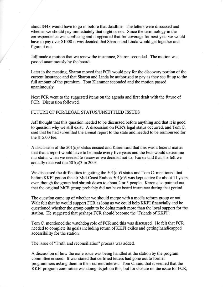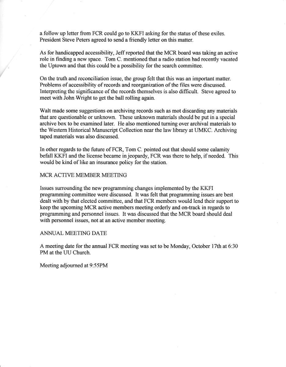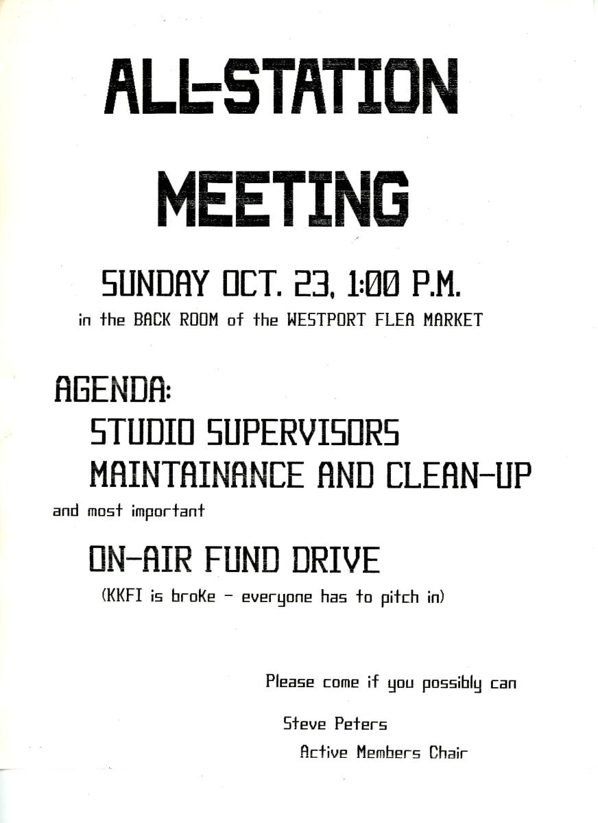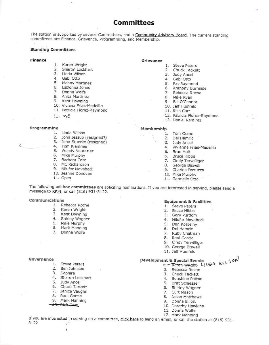 This information records the history of KKFI through its many meetings including board and committees. Although incomplete, it gives a documented way of looking at how people running the station made decisions.
