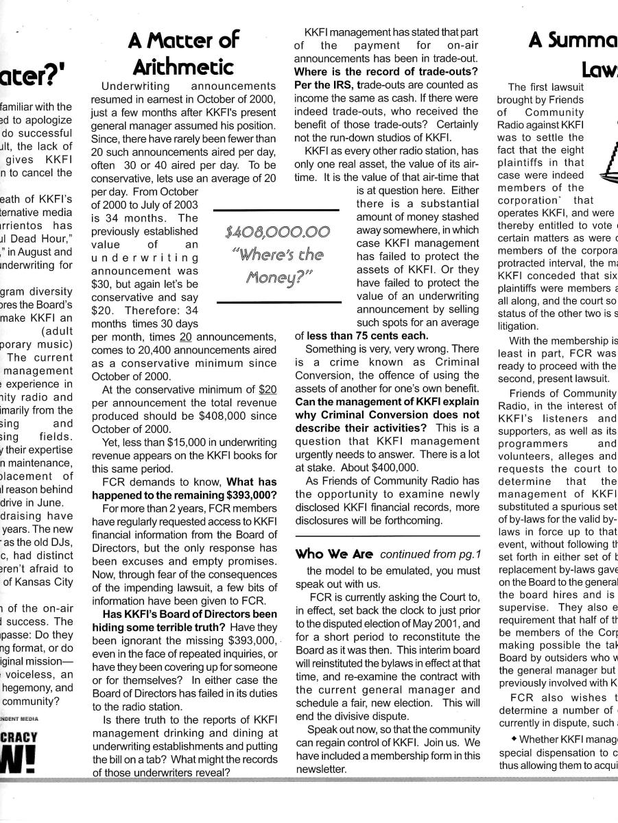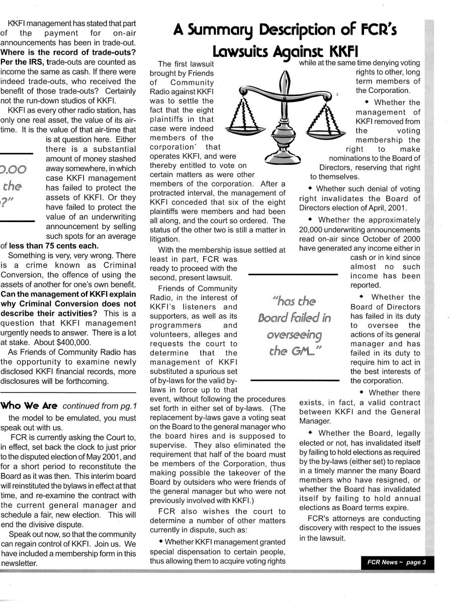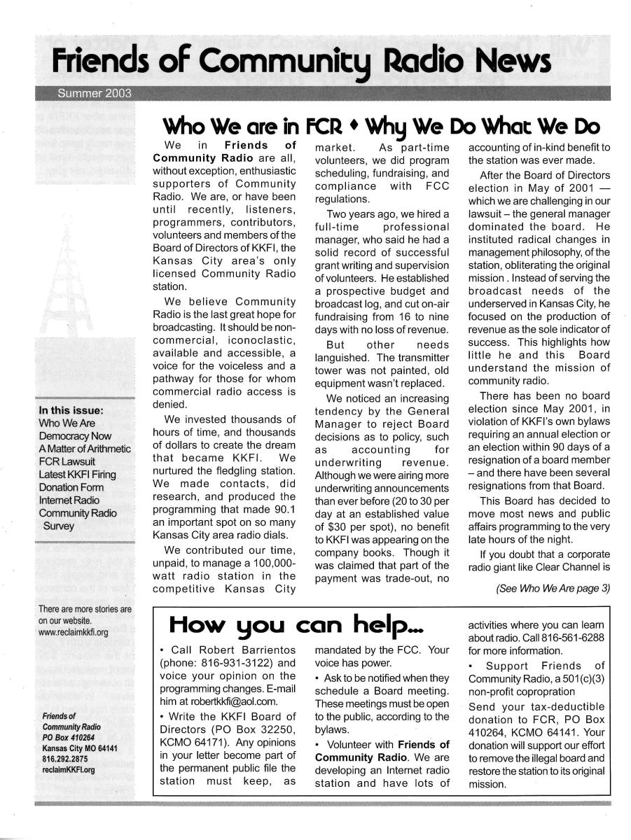 Newsletters are information that is sent out to the public and to KKFI people internally to let them know about events. They are usually a few pages and are different from program guides which are more complex.