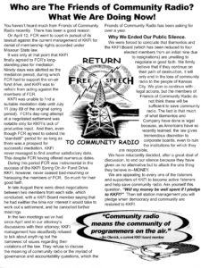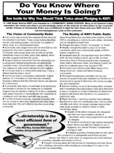 Newsletters are information that is sent out to the public and to KKFI people internally to let them know about events. They are usually a few pages and are different from program guides which are more complex.